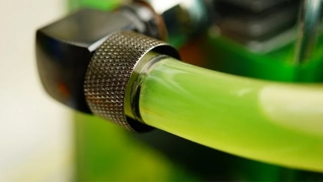 Al distribuir más eficientemente el agua sobre una mayor superficie (el radiador), el resultado es una mejor refrigeración general y velocidades de ventilador más silenciosas en comparación con la refrigeración por aire tradicional. (Aunque a veces decimos «refrigeración por agua» o usamos «agua» para hablar del medio en un sistema de refrigeración líquida, también se pueden usar otros refrigerantes como el glicol y el fluido dieléctrico).