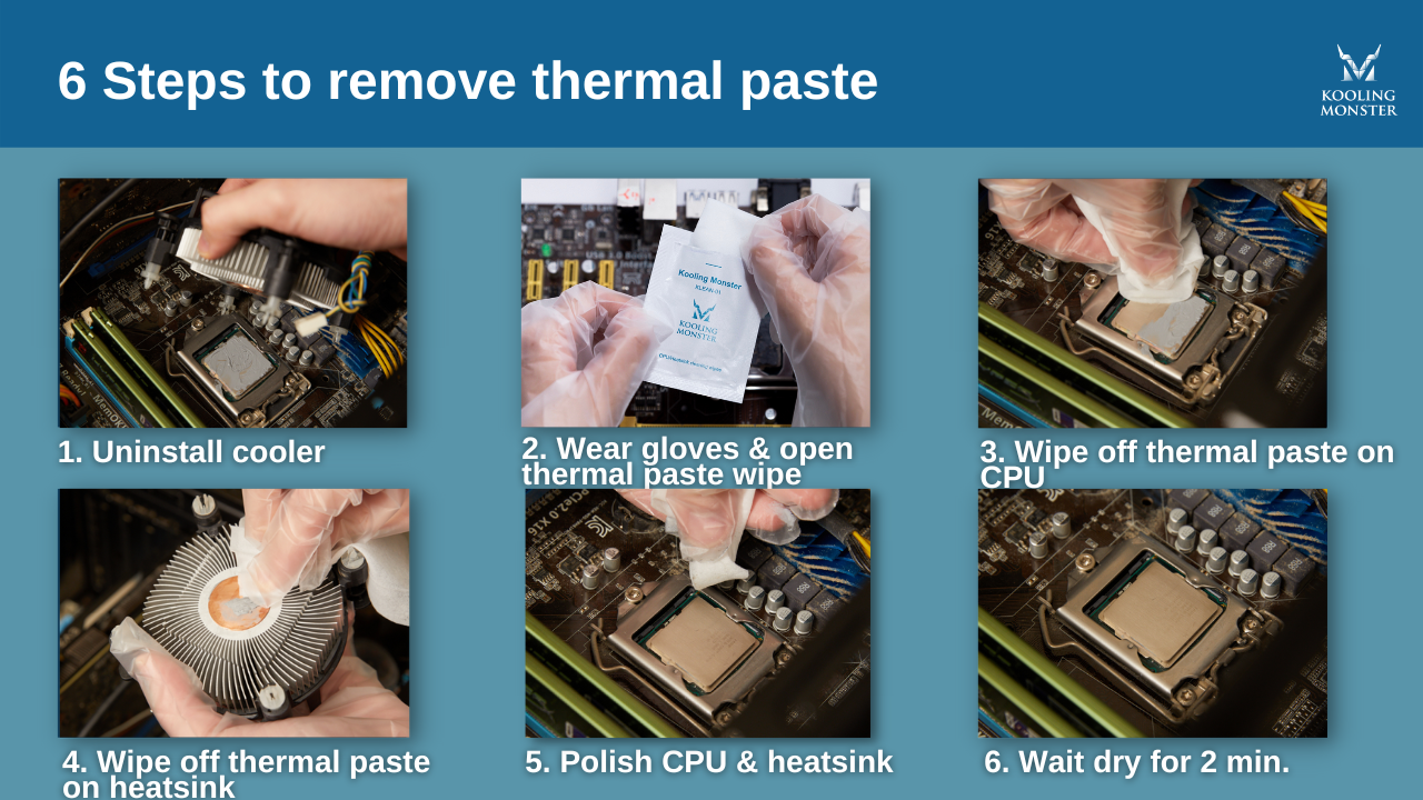 Kooling Monster KLEAN-01 es un compuesto especial hecho específicamente para limpiar la pasta térmica. Viene preaplicado en toallitas suaves, así que tampoco tienes que buscar toallitas de papel sin pelusas. (Aprende más sobre Cómo limpiar la pasta térmica de la CPU [Guía 2026 para principiantes])
