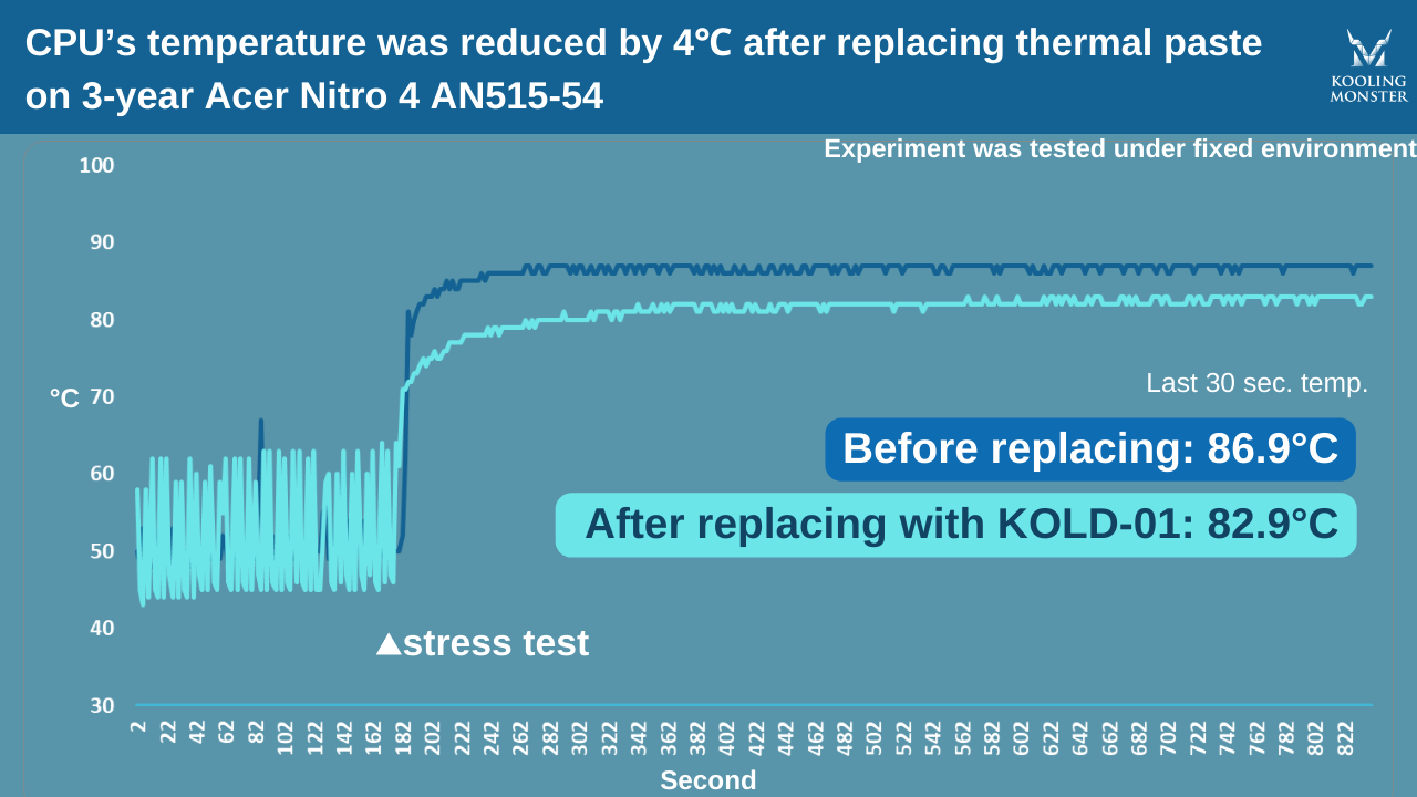 Pusimos esta teoría a prueba y aplicamos una capa fresca de pasta térmica Kooling Monster KOLD-01 a la CPU y GPU de nuestro portátil.