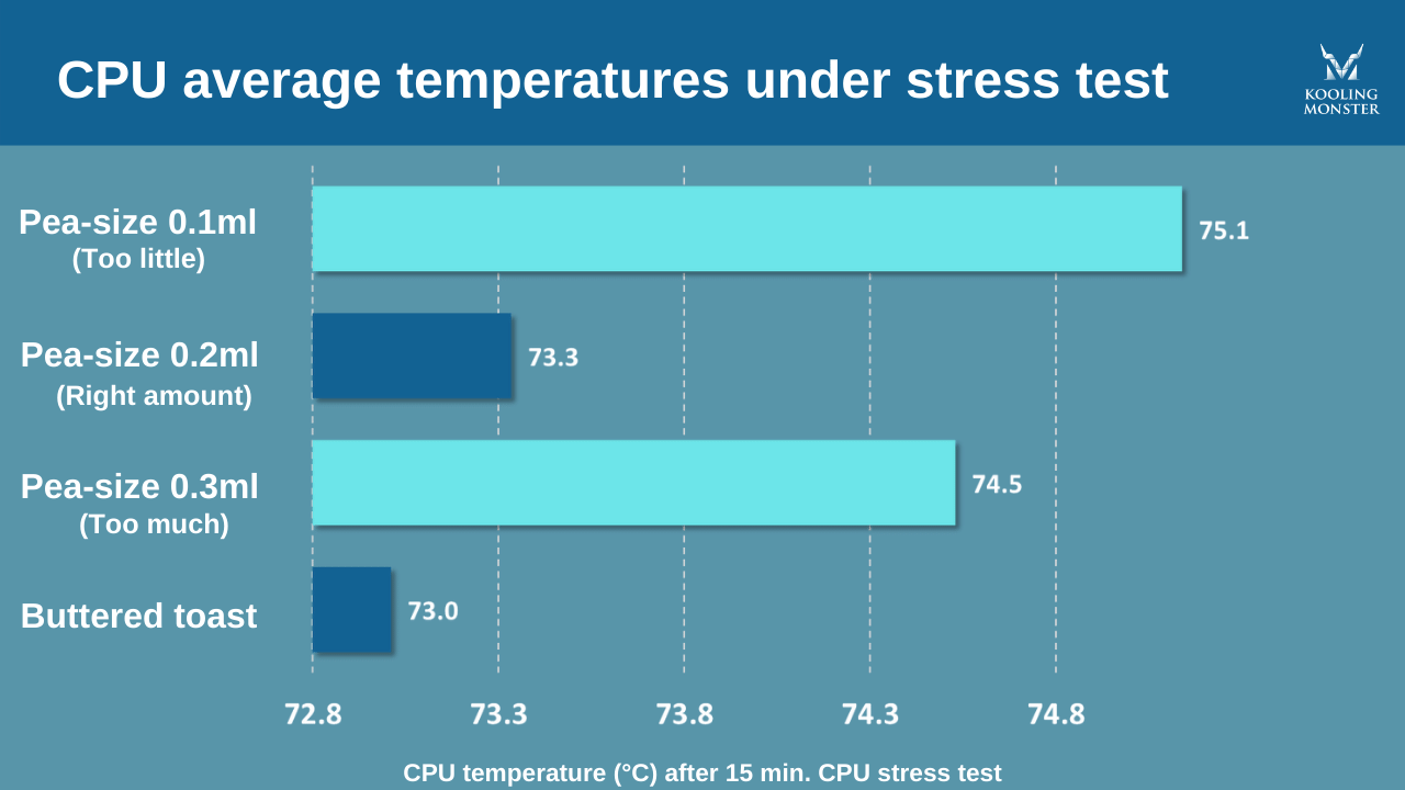 Además, encontramos que tener demasiada o demasiado poca pasta térmica tenía más impacto que cómo se aplicaba, e influía enormemente en la transferibilidad de calor.