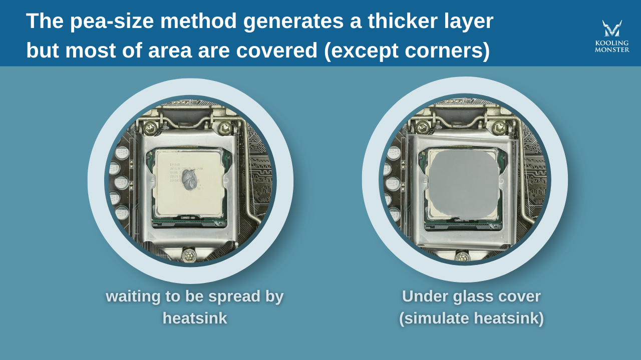 Aunque no rindió tan bien en este test, el método de aplicación del guisante sigue siendo muy efectivo y requiere poco esfuerzo. La mayoría de los métodos de aplicación darán un resultado bastante bueno y mejorarán el rendimiento en un sistema que necesite un cambio de pasta térmica, independientemente de cómo se aplique.