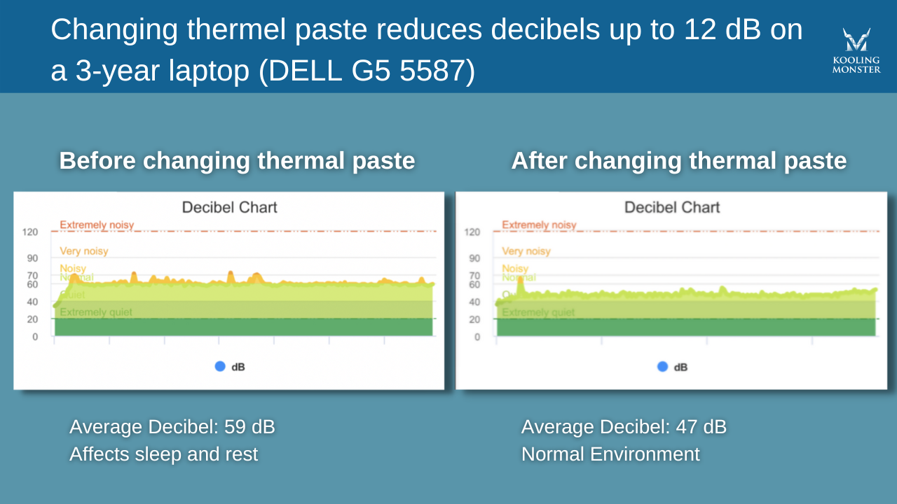 Como demostró el caso de estudio de Kooling Monster, reemplazar una pasta térmica degradada por una nueva puede disminuir masivamente el ruido del ventilador. Esto es posible gracias al rendimiento térmico mejorado del PC con la nueva pasta térmica.